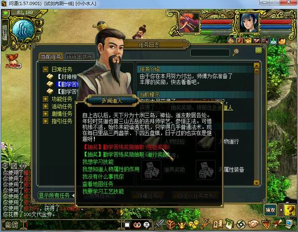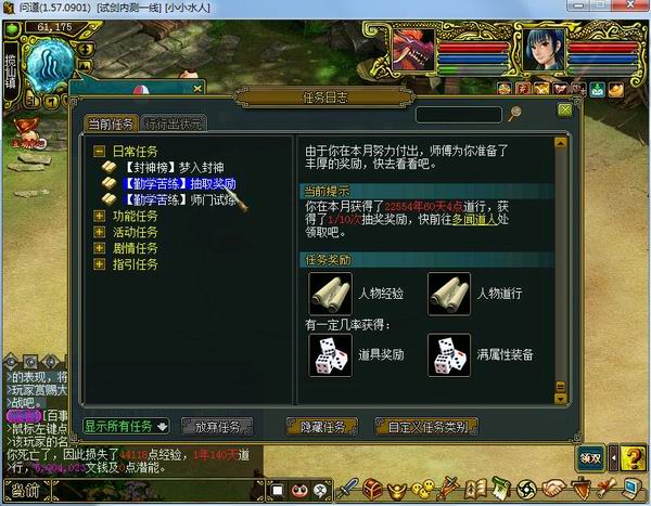 经验或道行(武学)奖励, 有几率获得商城道具、 满属性装备 |
