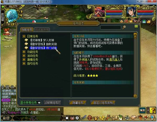 当本月新增道行达到等级标道一定倍数后,获得【勤学苦练】奖励任务。