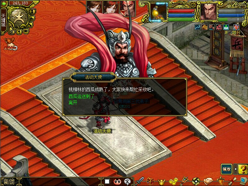 1、活动开始后,40级以上的玩家可自动获得保卫西瓜的任务,前往桃柳林可摘取西瓜,摘取过程中有几率触发战斗,战斗胜利才才可以获得西瓜。