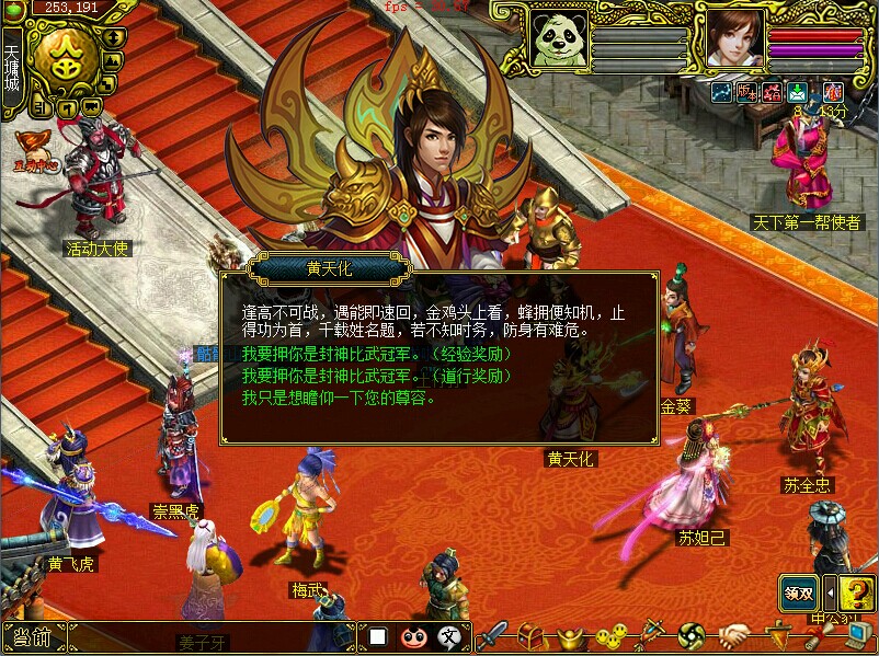 封神比武大会在天墉城召开,各路豪杰聚首天墉城,施展才艺绝学,赢封神竞技积分及封神勋章,兑换丰厚奖励~~