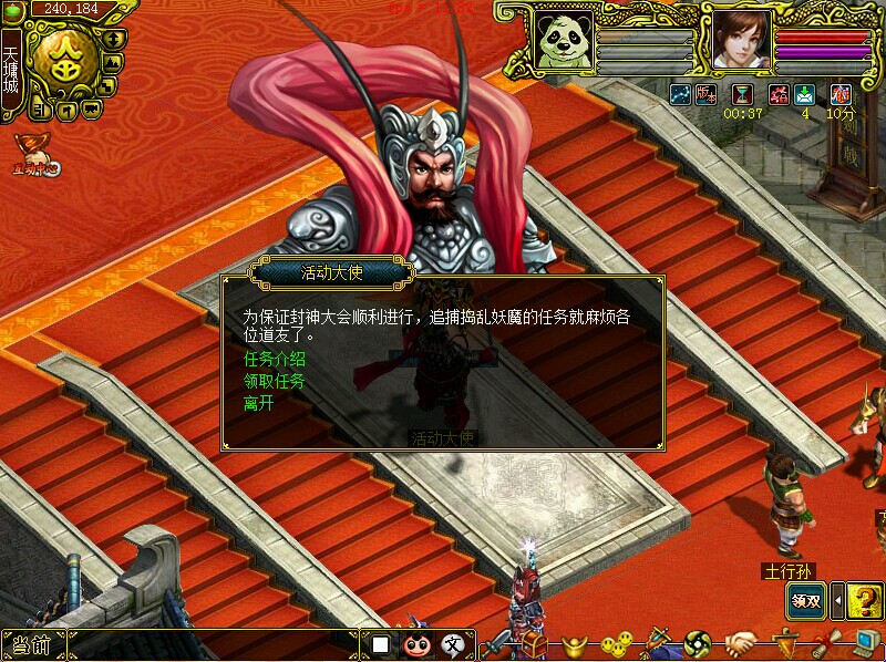 1、活动开启后,每到整点或整点过10分,玩家可以在天墉城活动大使处领取追捕任务,前往追杀妖魔。