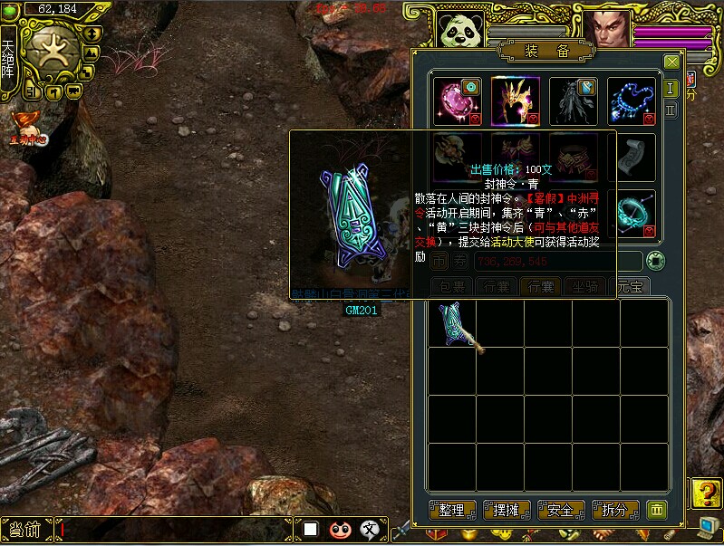 活动开放期间,玩家在练功区击杀不低于自己等级10级的怪物,有几率可以获得封神令,将整套的封神令交给活动大师后可获得活动奖励。