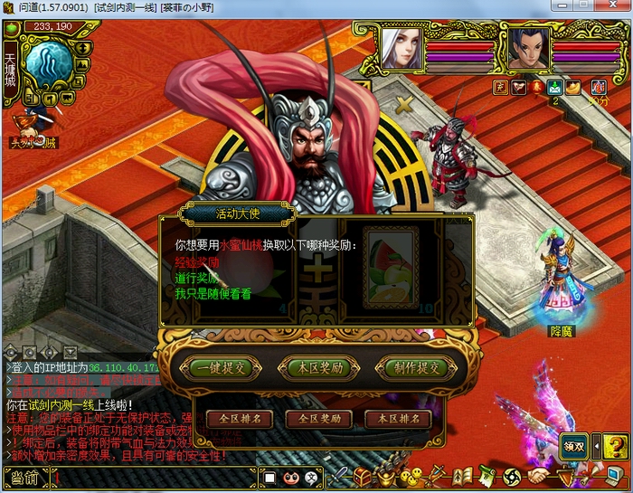 3、活动时间结束后,提交“水蜜仙桃”数量排名靠前的玩家可以前往活动大使处领取宠物奖励,提交个数达到指定条件的玩家有几率抽中生肖宠;