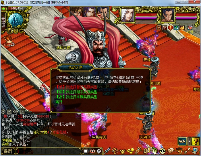 2、此类挑战的奖励分为低(免费)、中(消费)和高(消费)三种,玩家可自行选择挑战类别,且仅在当天23:59前挑战有效;