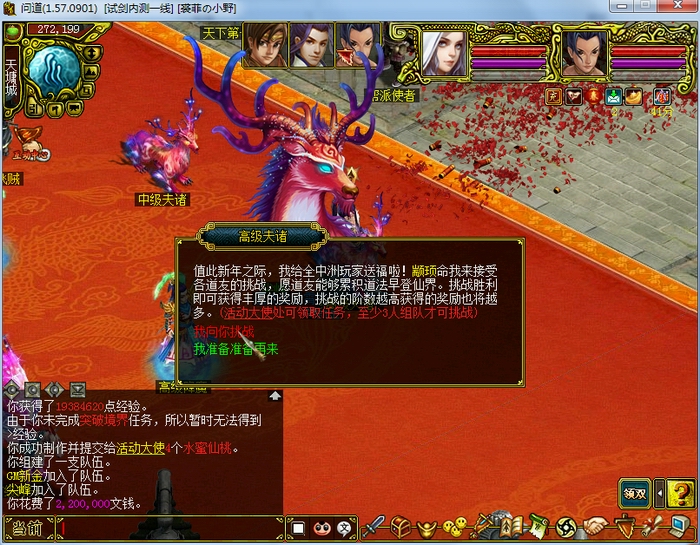 值此新年之际,颛顼给全中洲玩家送福啦!完成众多指定的系统获得经验或道行时,能额外获得颛顼赠送给你的勤奋奖励哟!