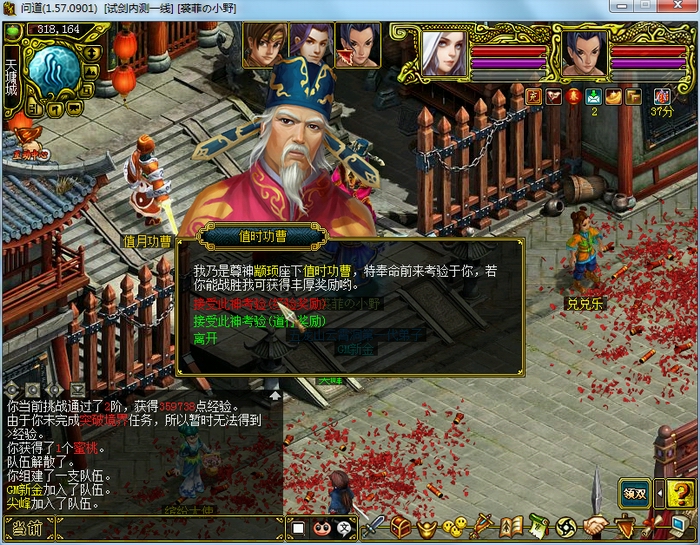 1、大于等于40级的玩家可以组队或单人挑战值年功曹、值月功曹、值日功曹、值时功曹,挑战胜利后玩家在接下来的6分钟内每隔3分钟会获得一次数值奖励,奖励时间随着挑战胜利次数累加;
