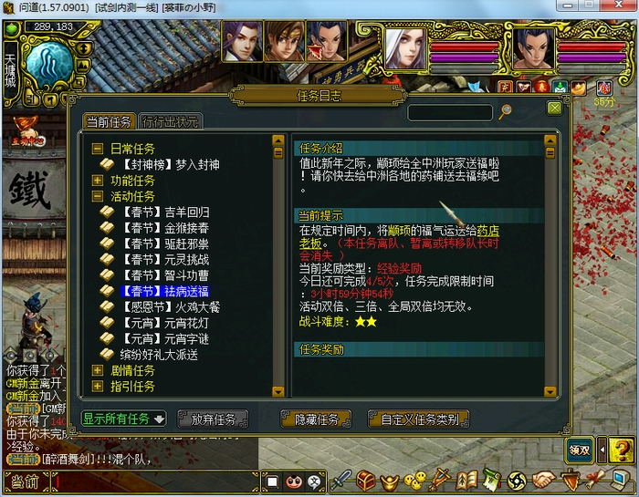 快去活动大使处领取任务给中洲各地的药铺送去福缘,使中洲百姓免于病痛吧。